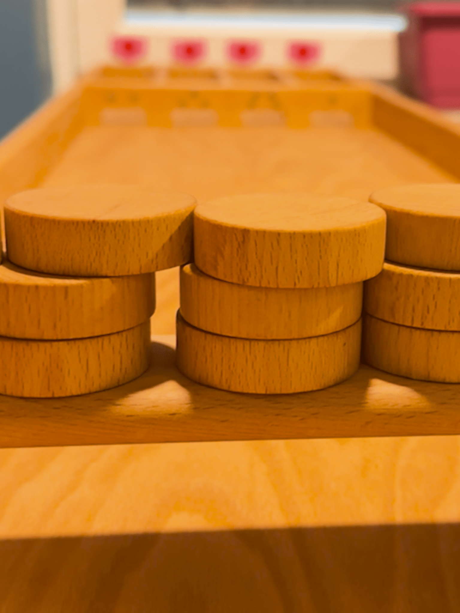 Das Runde muss ins Eckige! Lass die Holzscheiben ins Ziel rutschen